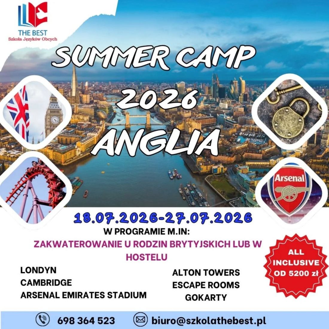ZAPRASZAMY NA LETNI OBÓZ JĘZYKOWY W ANGLII
